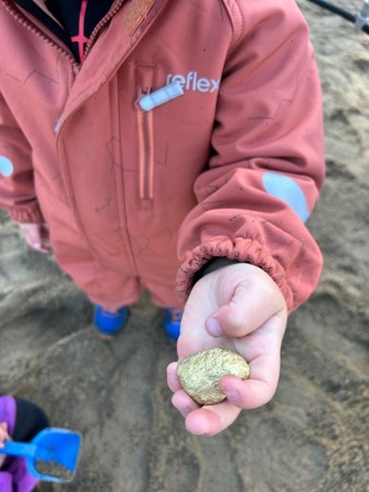 Vi har også hatt skattejakt og funnet masse gull i sandkassa. Barna ble veldig overrasket og fornøyde!