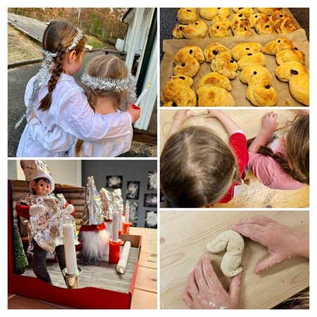 Vi har gått Lucia og bakt lussekatter. Til og med rampenissen Felix har gått i Lucia tog 🤭