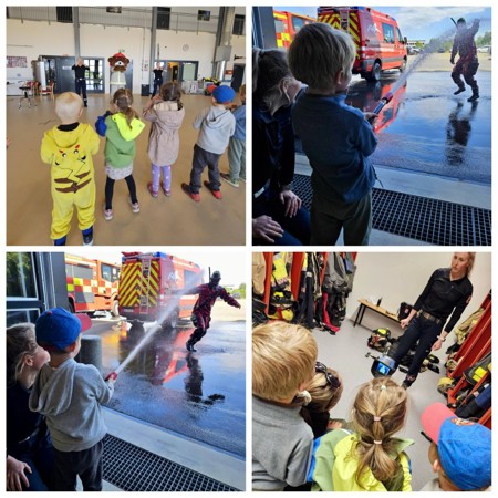 Førskolebarna ble i år igjen invitert til et fantastisk flott opplegg på brannstasjonen 🔥 Vi fikk være med på oppkledning i garderoben, spyle med brannslangen, sitte i brannbil, danse og ta bilde med Bjrørnis 📸🐻
