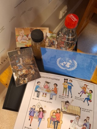 Vi snakket sammen om Barnekonvensjonen og så på bilder. Vi er heldige i Norge som får gå i barnehage og på skole ❤️ Slik er det ikke for alle barn!