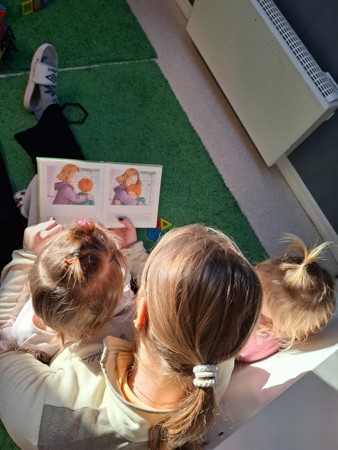 I en hektisk barnehagedag er små pauser viktige. Å sitte i et fang og lese en bok gir ro, trygghet og nærhet, og hjelper barnet med å hente seg inn igjen før leken fortsetter 💛