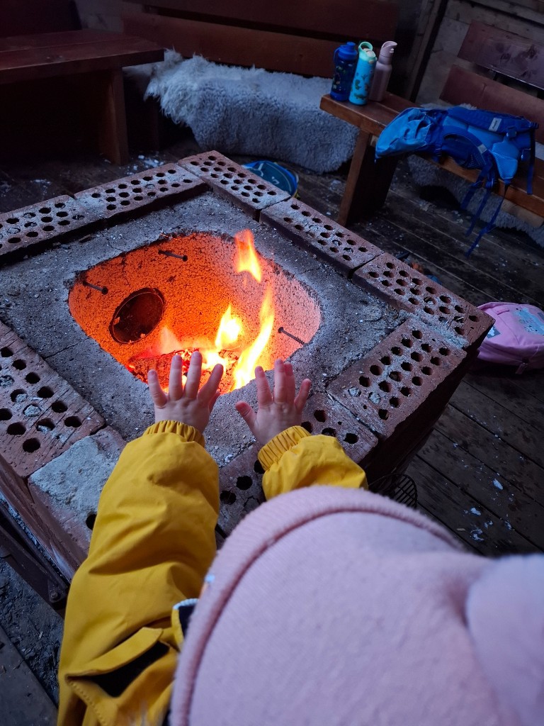 Etter noen timer ute er det alltid godt å varme hendene sine rundt bålet i Lavvoen.